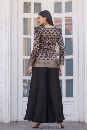 Black Color Long Sleeves V Neck Top with Palazzo Set