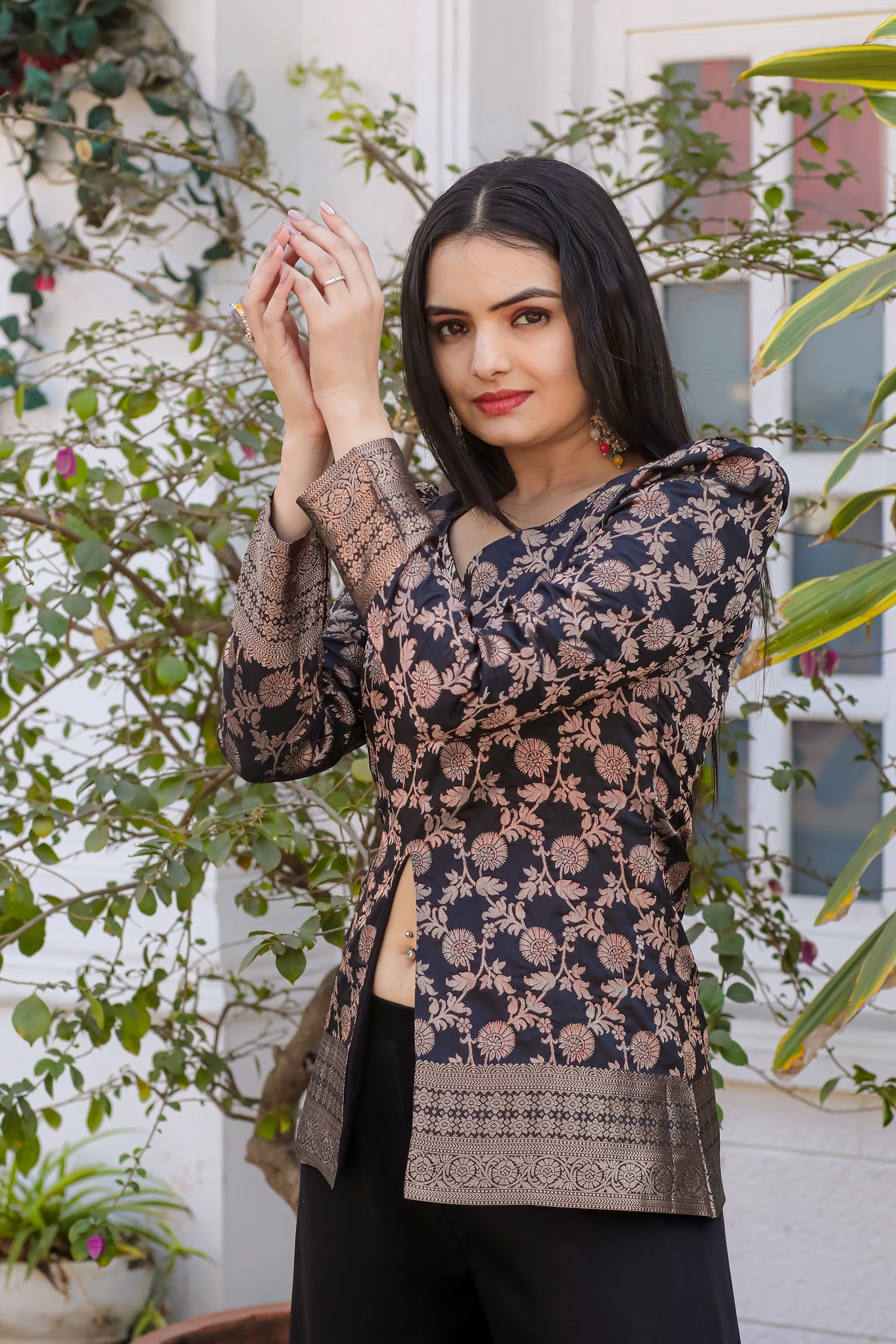 This Stunning Ensemble Features A Vibrant Peplum With Palazzo.