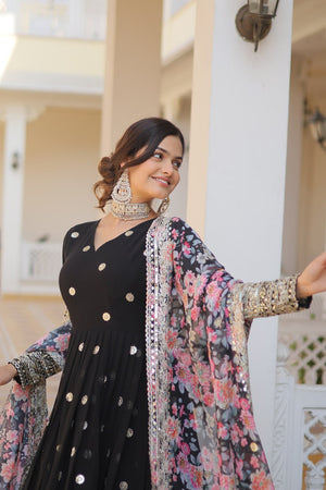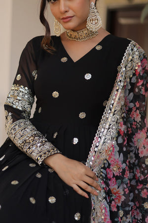 Black Colour Faux Georgette With Embroidery Zari Sequins Work Gown
