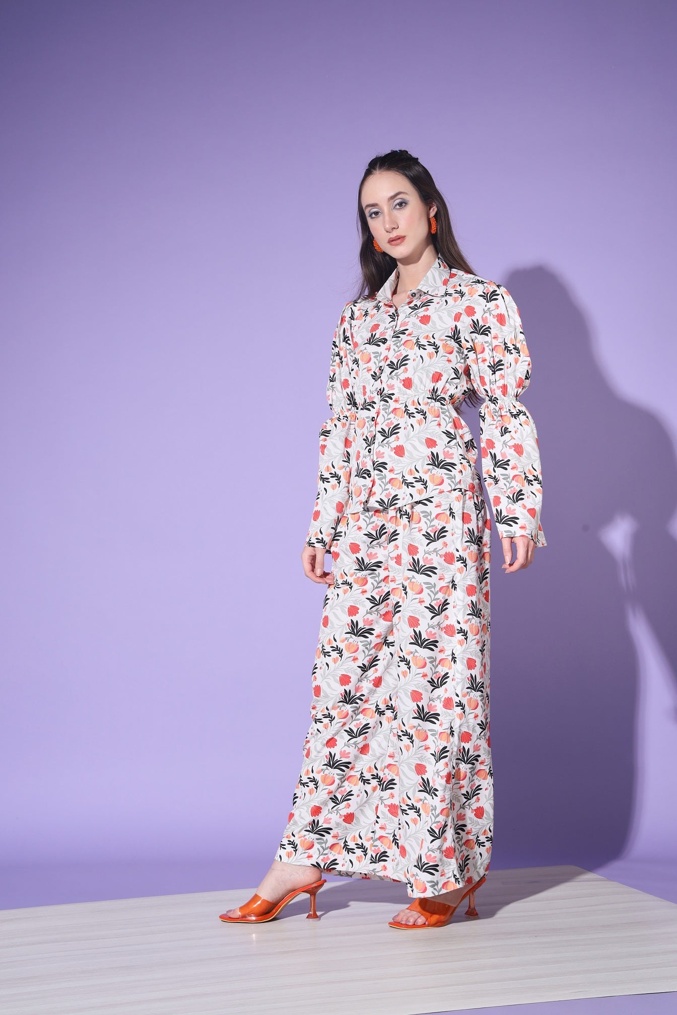 White Designer Floral Printed Top And Bottom Co-Ord Set