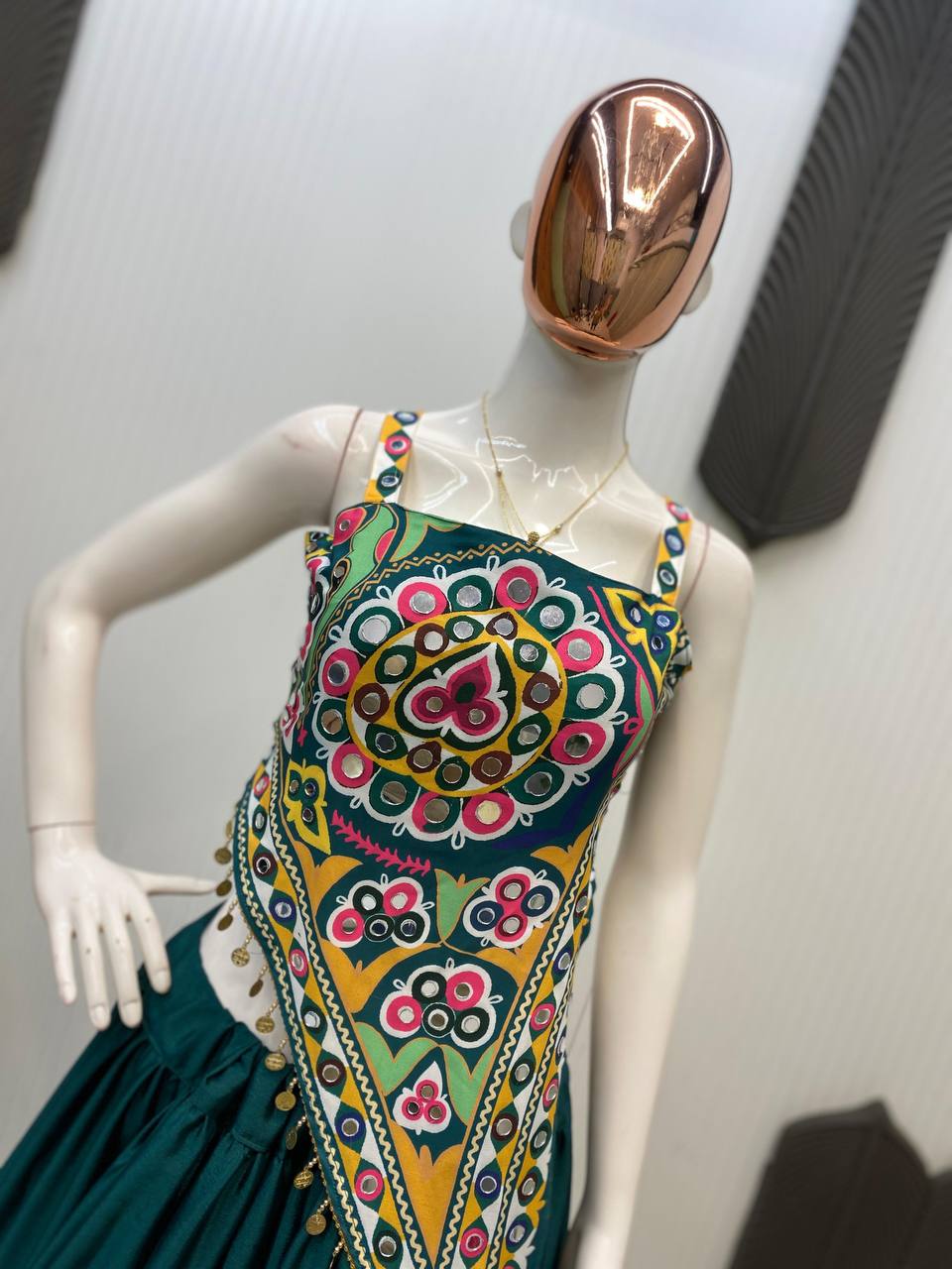 Green Rayon Real Mirror Work Navratri Lehenga Choli