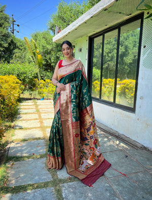 Green Soft Paithani Silk 3d Traditional Design Patterns Gold And Silver Zari Saree