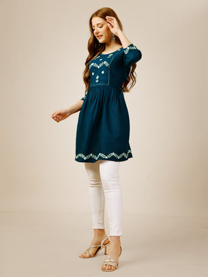 Blue Color Fully Stiched Western Top Rayon with Embroidery and Sequence Work Kurti