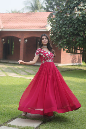 Pink Colour Faux Blooming With Coding Sequins Embroidered Work Gown