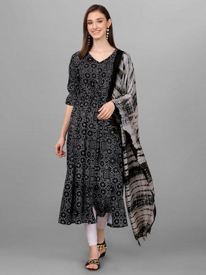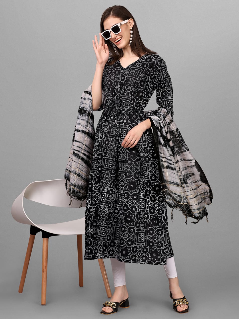 This kurti is made up with Heavy Rayon and Dupatta is made up of Nylon Fancy Fabric.
