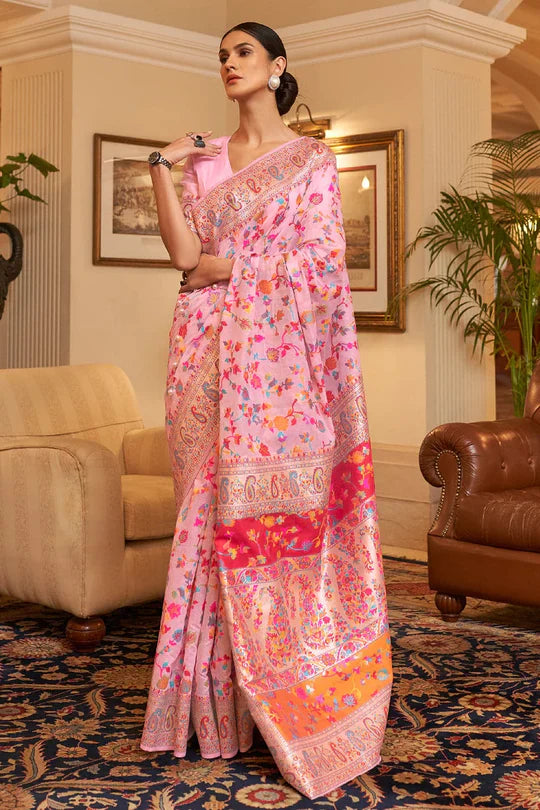 Rose Pink Kashmiri Modal Handloom Weaving Saree