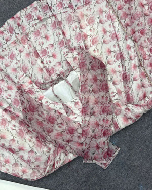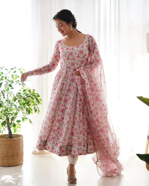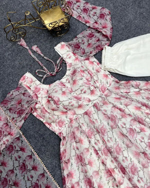 Digitally Printed Pure Soft Organza Anarkali Suit With Huge Flair Comes With Duppatta N Pant