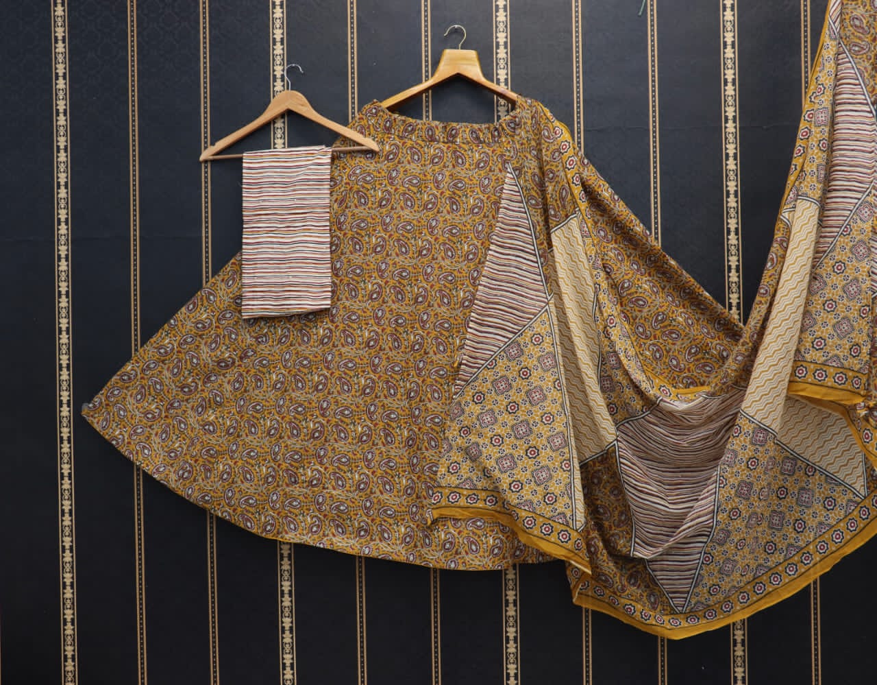 Mehndi Pure Cotton Lehenga Choli with Soft MalMal Duppata