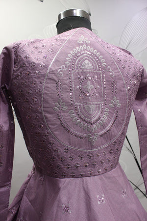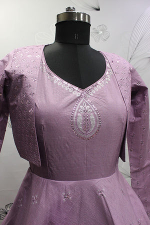 Lavender Sequence Embroidered Pure Cotton Gown With Koti