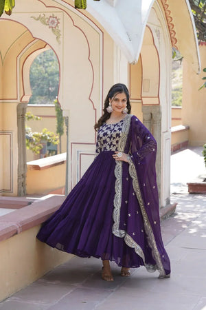 Purple Faux Blooming With Viscose Dyable Jacquard With Sequins Embroidered Work Gown Wth Dupatta