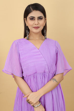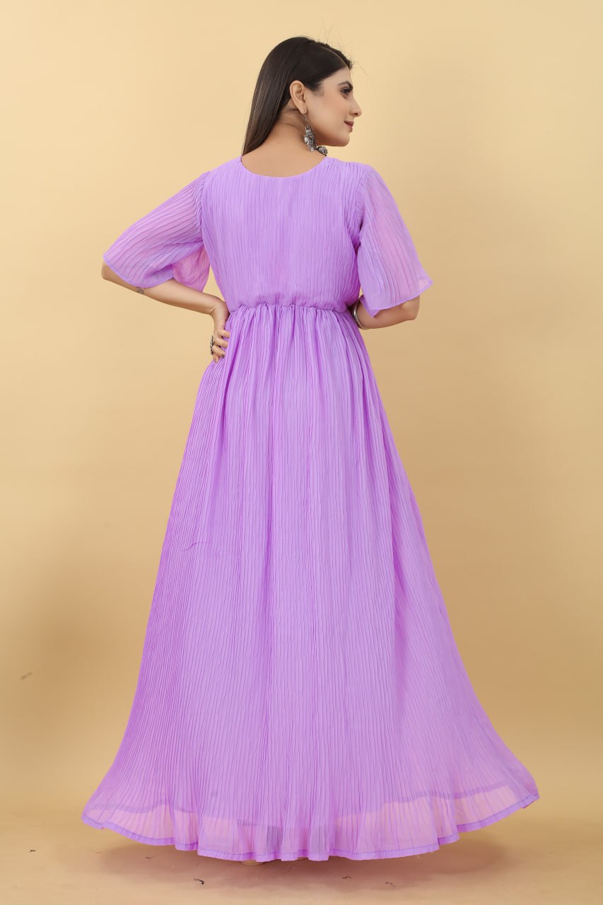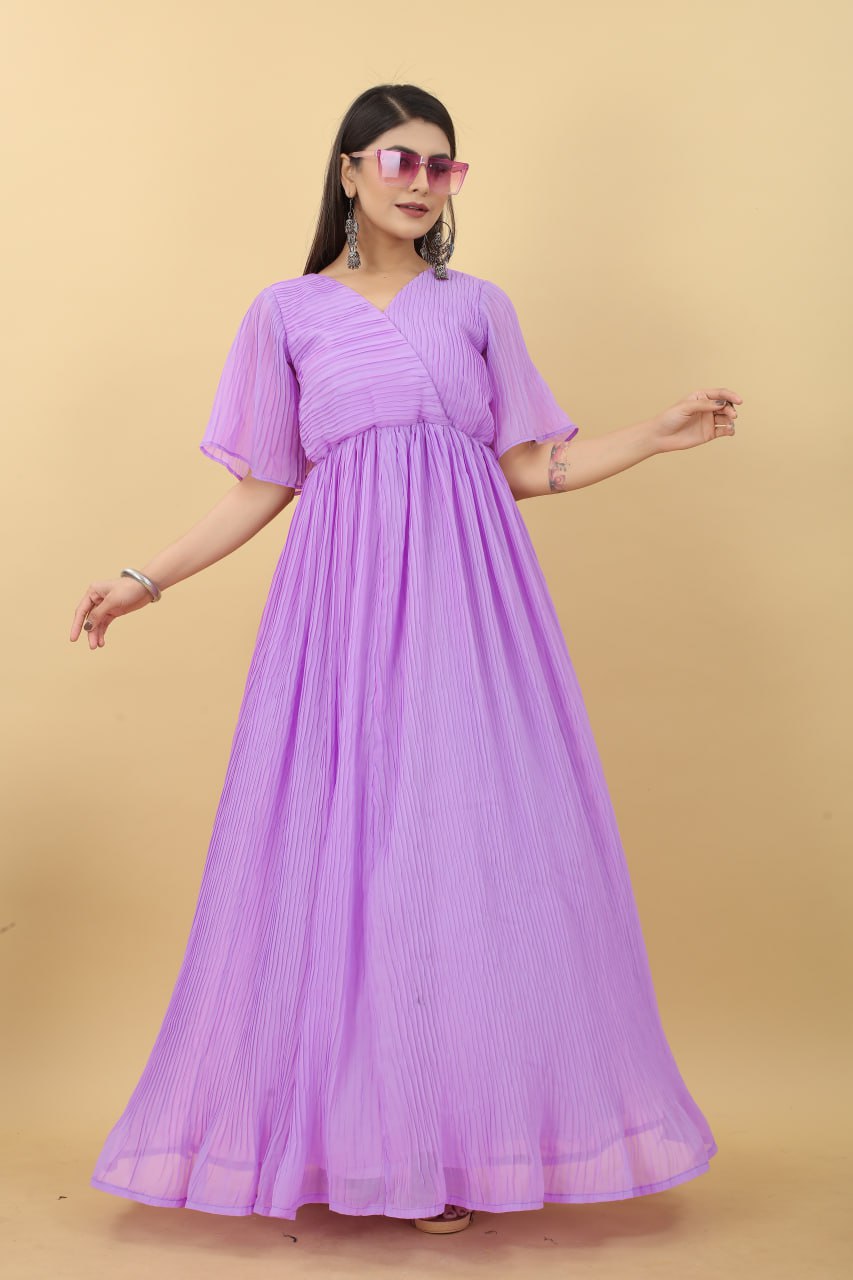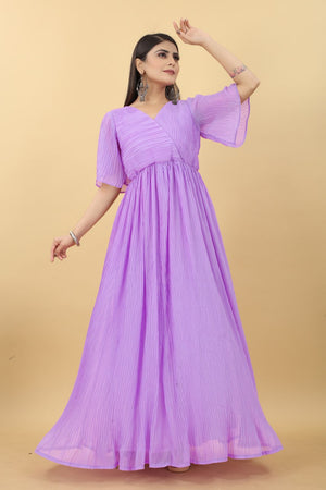 Light Purple Colour Pleated Georgette Designer Emerald Gown