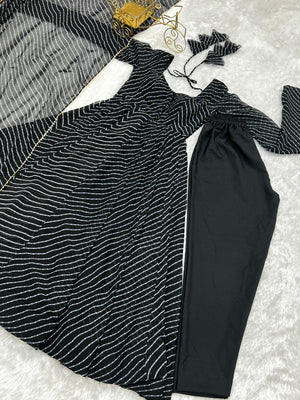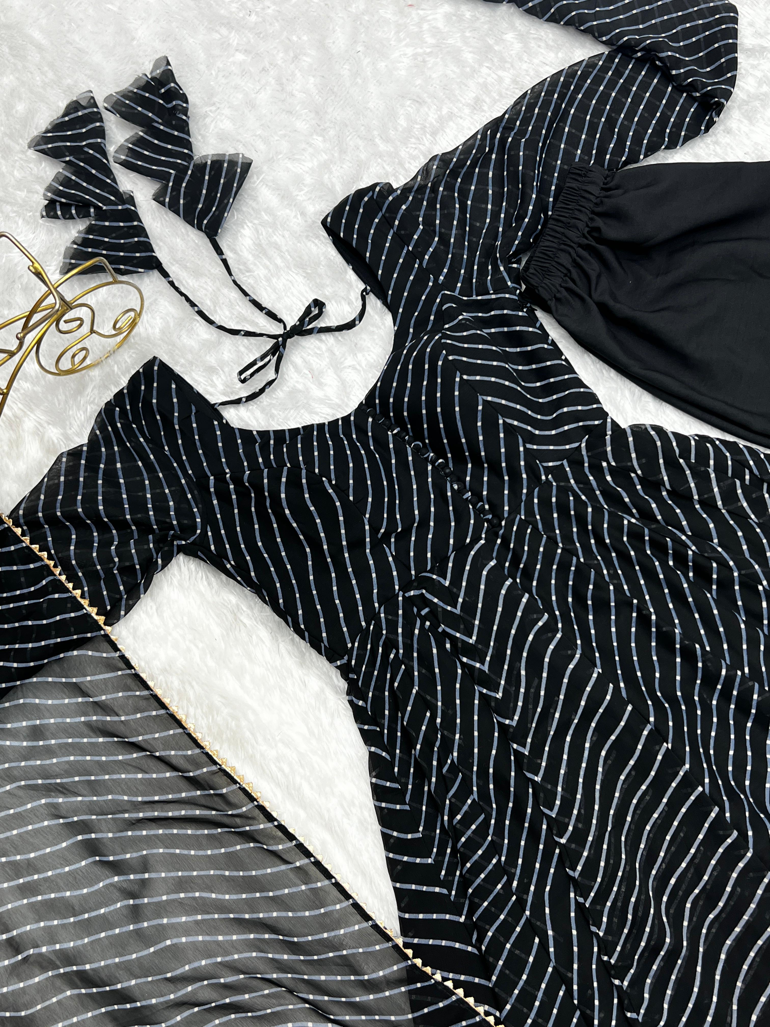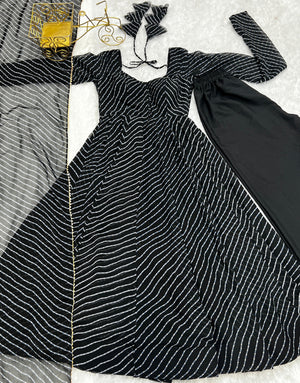 Black Pure Fox Georgette Laheriya Print Fabric Fully Flair Anarkali Duppta With Pent