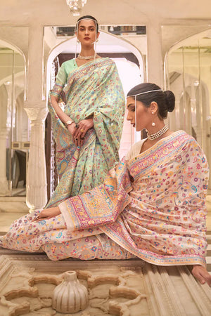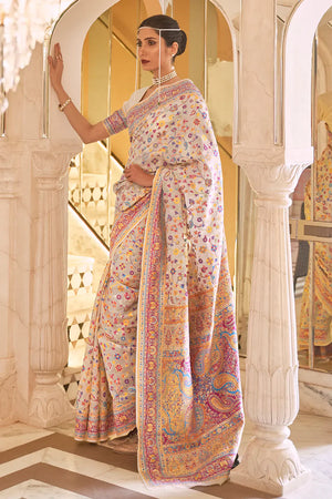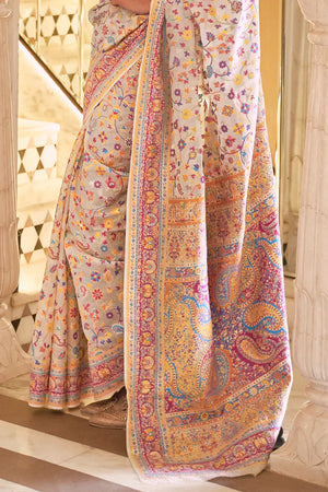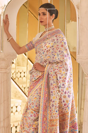Latest Cream Colour Soft Handloom Weaving Silk Saree With Blouse