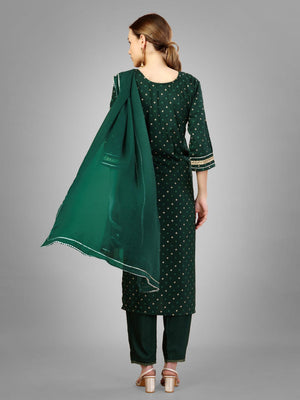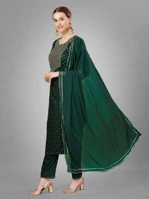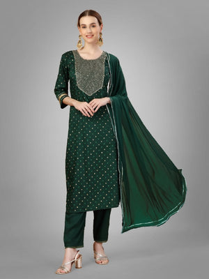 Dark Green Color Silk Blend with Embroidery and Sequence Work Pant - Kurti Pant Dupatta