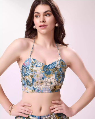 Printed Designer Western Co-Ords with Blouse Set