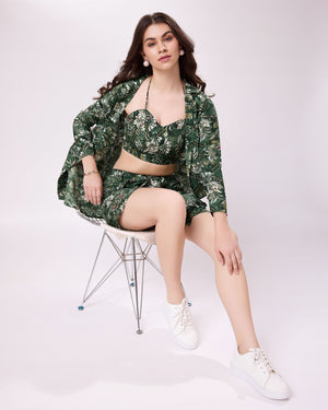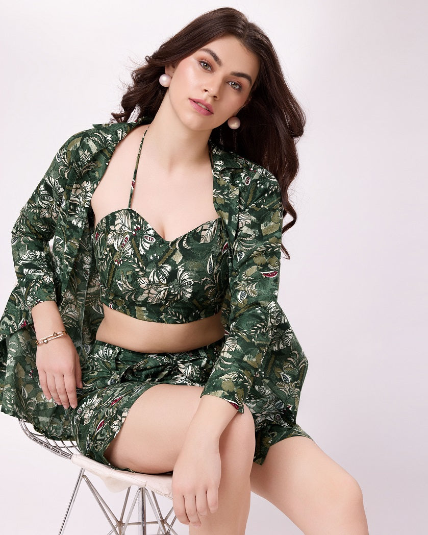 Exclusive Green Color Designer Three Piece Co-Ords Set