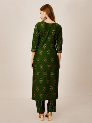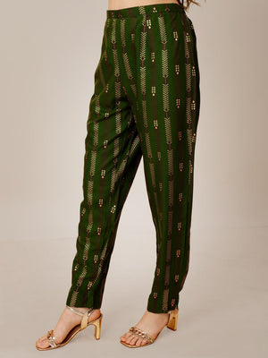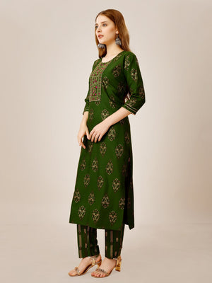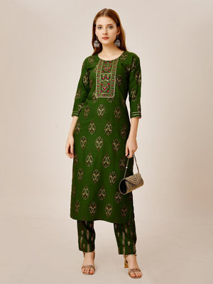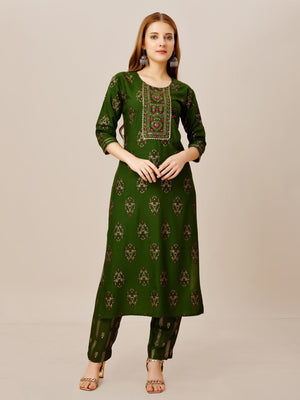 Green Color Heavy Rayon 14 Kgs With Embroidery Work Kurti and Pant