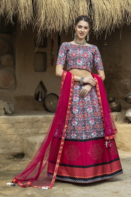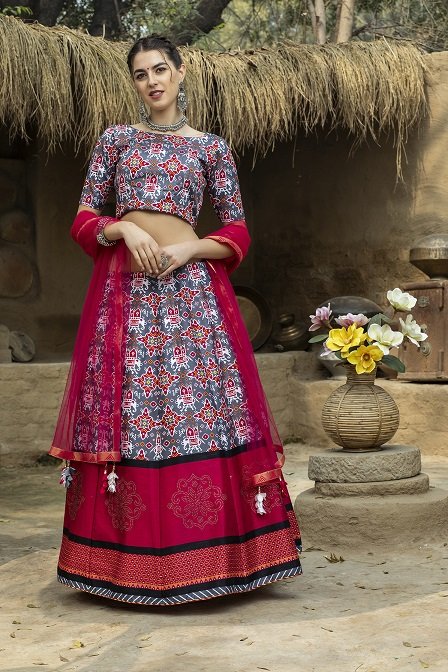 Grey with Magenta Printed Lehenga Choli Collection