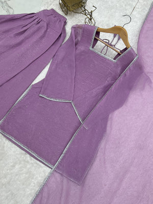 Lavender Crunchy Silk Salwar Suit with Sparkling Siroksy Work & Designer Dupatta Set