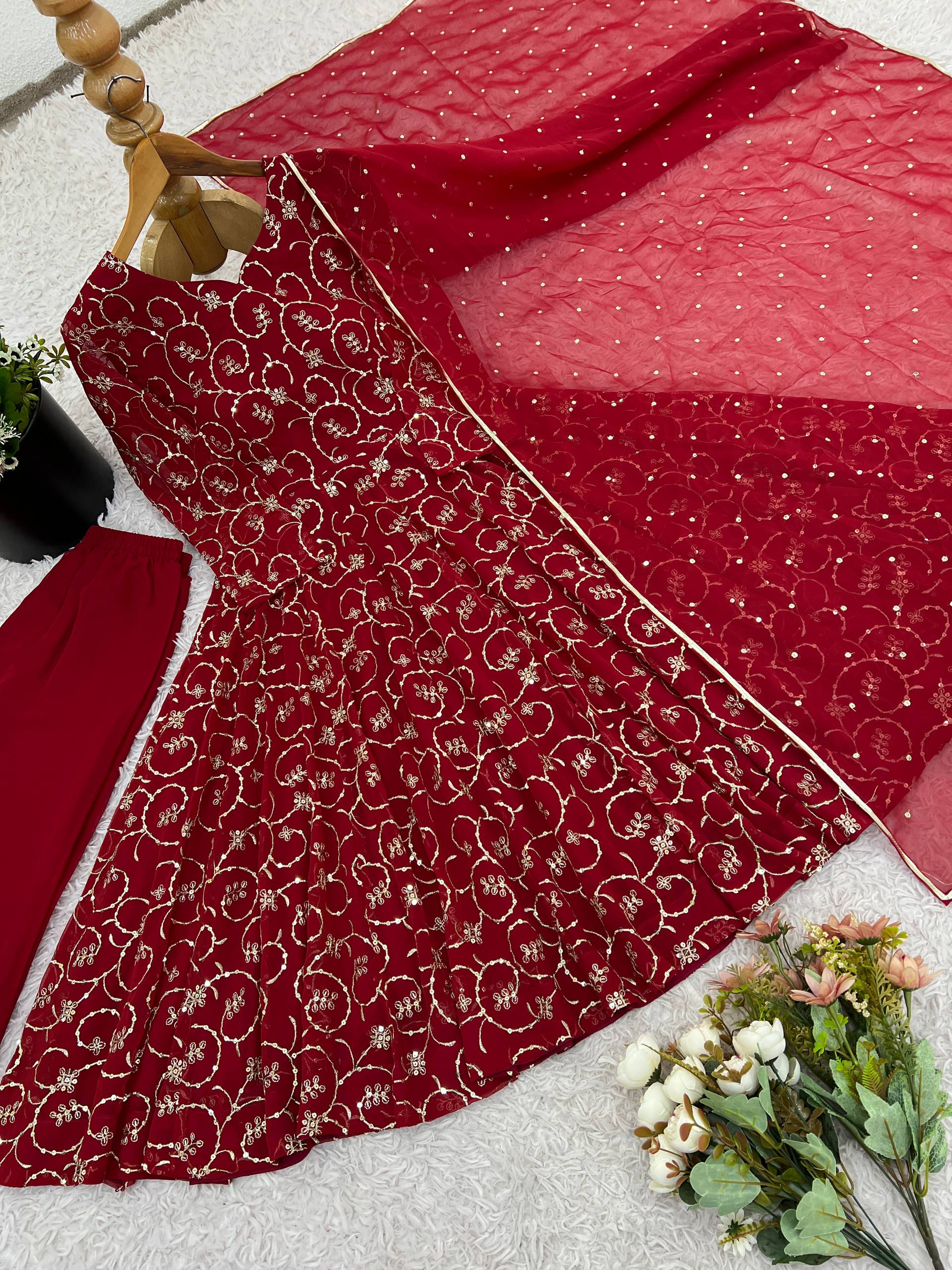 Maroon Georgette With Embroidery Sequence Work Anarkali Salwar Suit