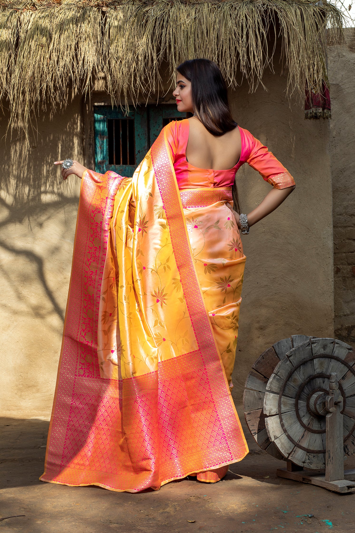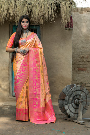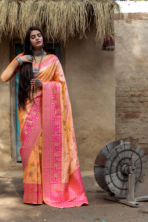 Light Orange Banarasi Weaving Silk Exclusive Saree.
