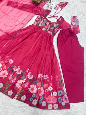 Pink Pure Soft Organja Silk Flower Position Outing Work Salwar Suit