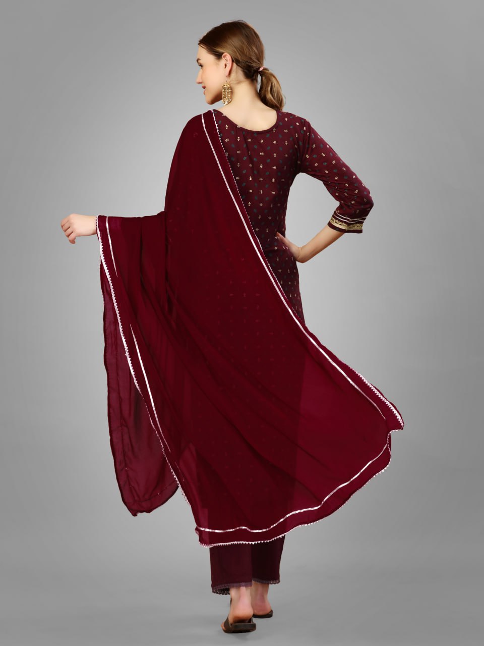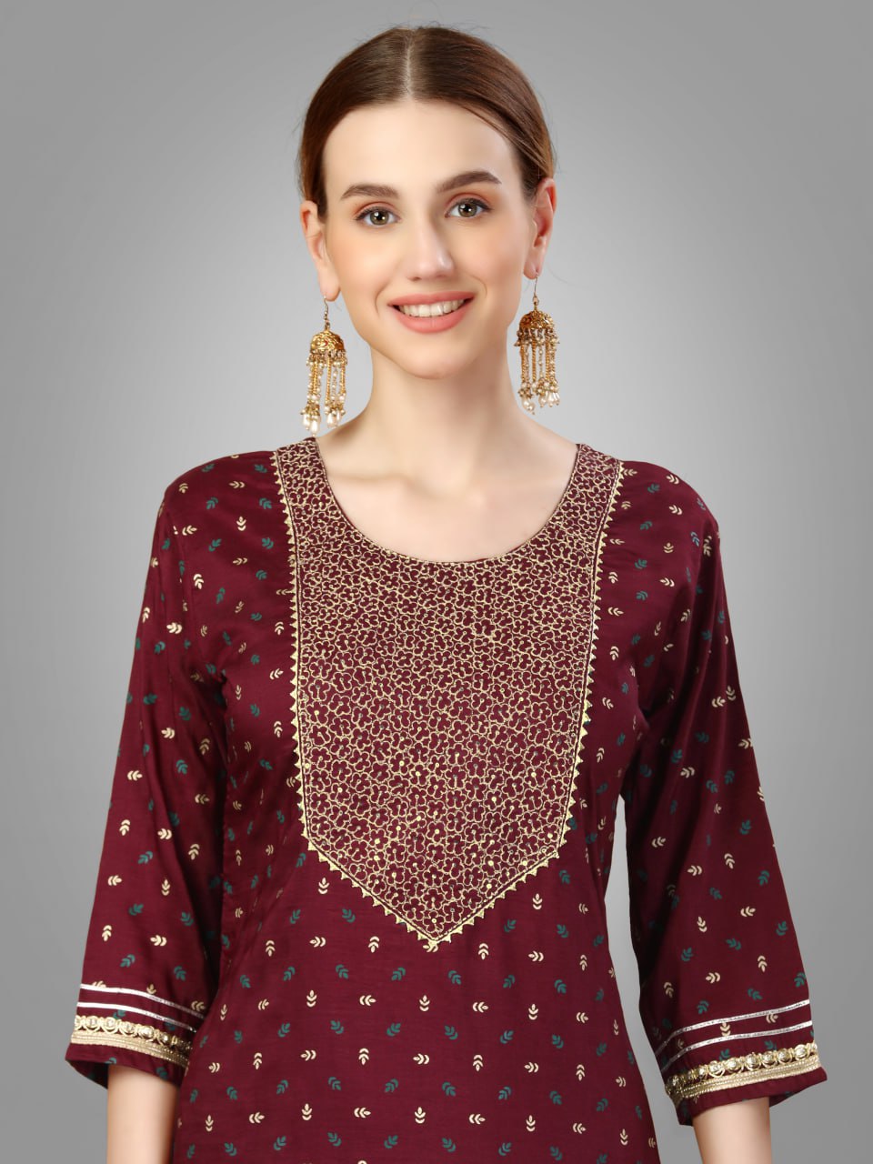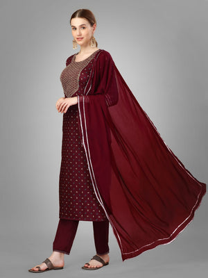 Maroon Color Silk Blend with Embroidery and Sequence Work Pant - Kurti Pant Dupatta