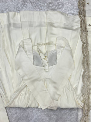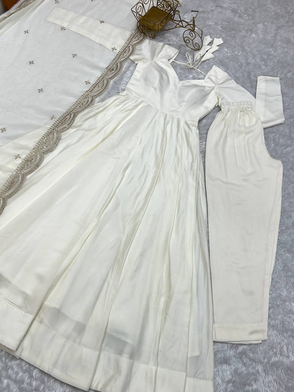White Fresh Look Chanderi Silk Fully Flair Anarkali Suit