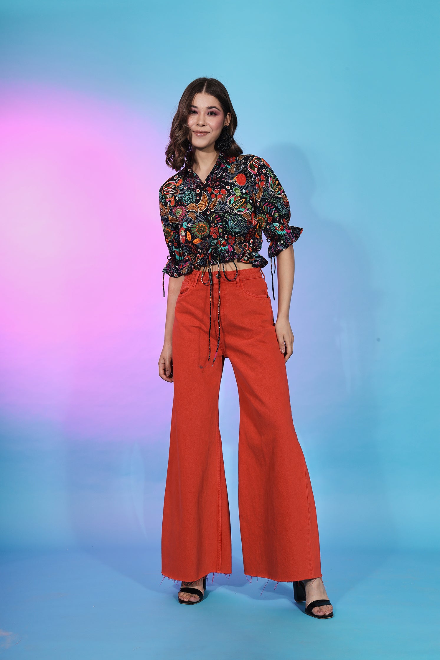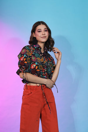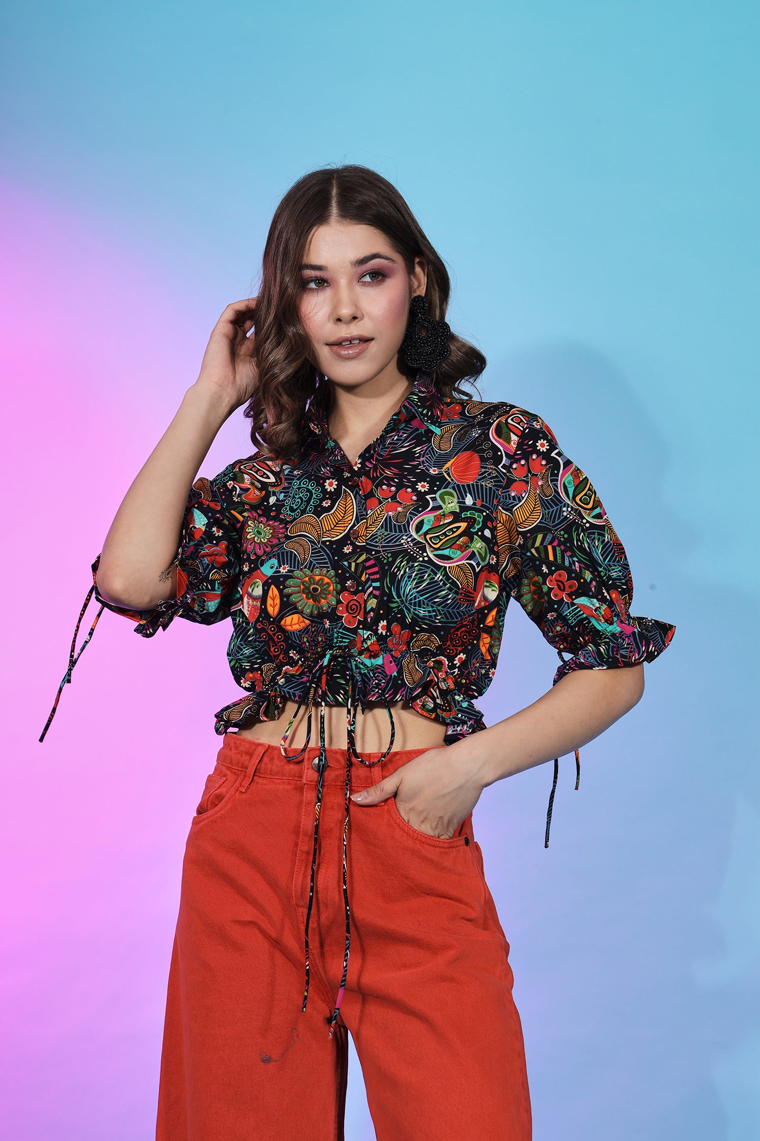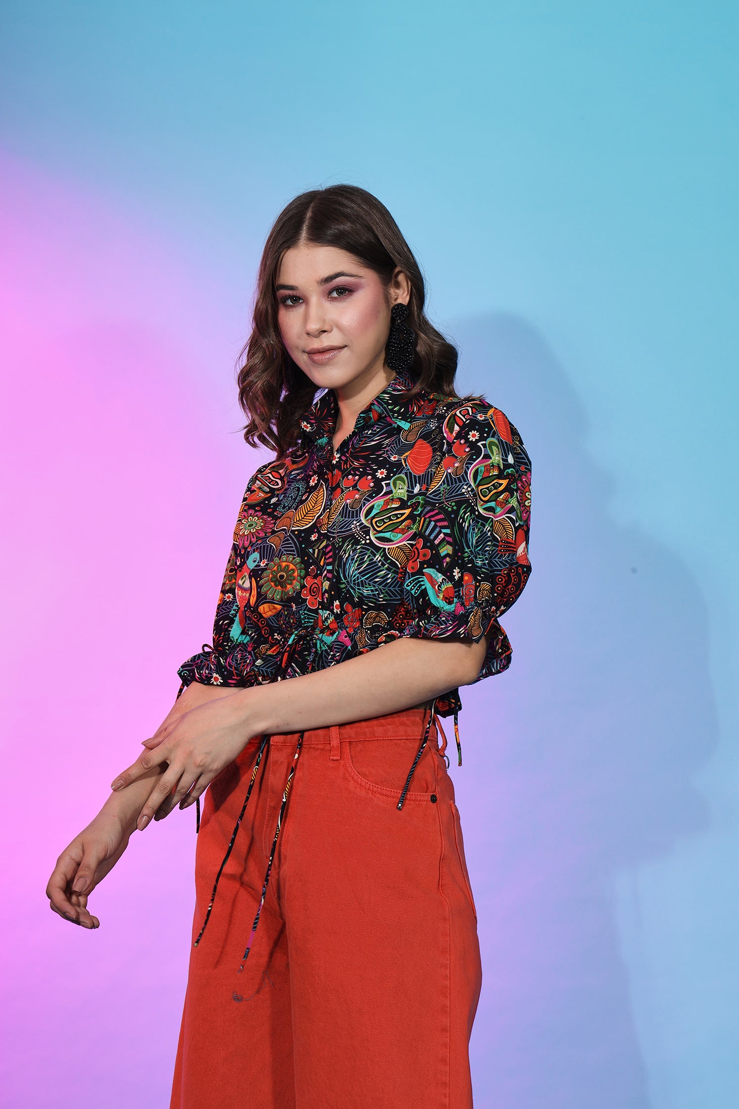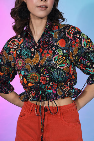 Multi Viscose Rayon Self Design Collar Pattern Top