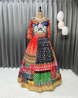 Multicolor Fancy Digital Print Soft Butter Silk and Real Mirror Work Lehenga Choli