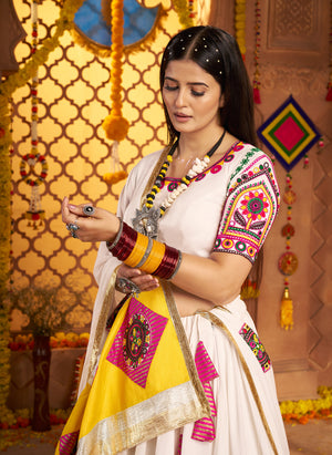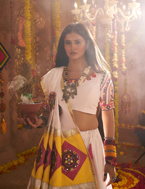 White Viscose Cotton Premium Navratri Lehenga Choli