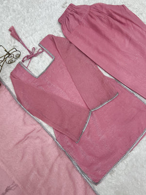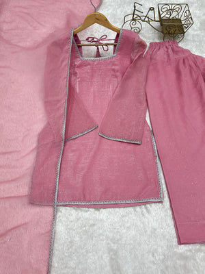 Pink Crunchy Silk Salwar Suit with Sparkling Siroksy Work & Designer Dupatta Set