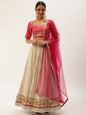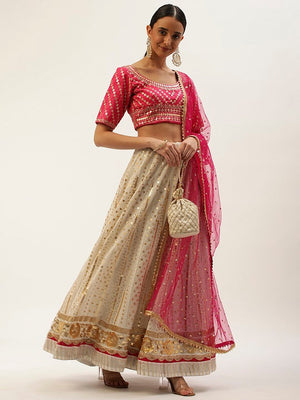 Pink Goergette With Sequins & Thread Embroidery Work Lehenga Choli
