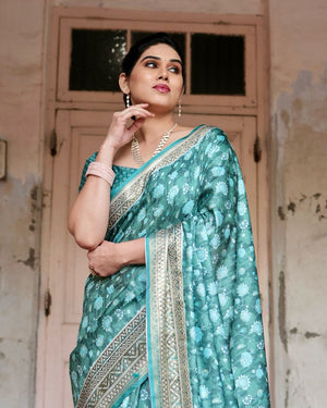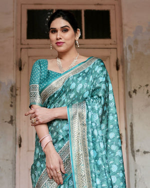 PURE SILK DIGITALLY PRINTED SAREE WEAVED WITH GOLDEN ZARI COMES WITH TASSELS