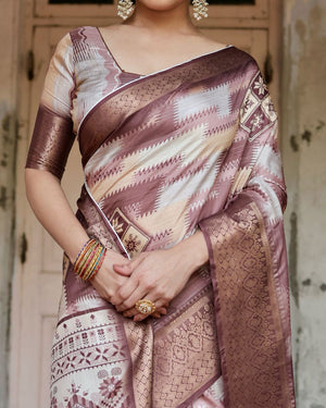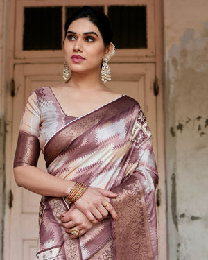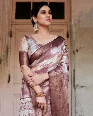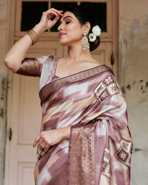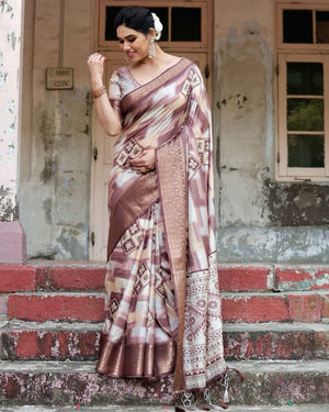 PURE SILK DIGITALLY PRINTED SAREE WEAVED WITH GOLDEN ZARI COMES WITH TASSELS