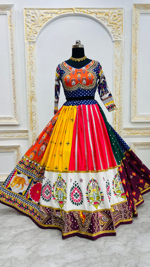 Multicolor Digital Print Real Mirror Work Navratri Lehenga Choli