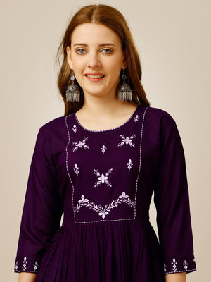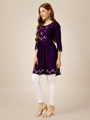 Purple Color Rayon with Embroidery and Sequence Work Kurti