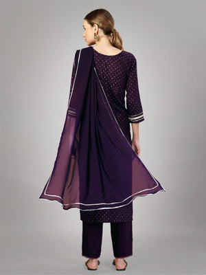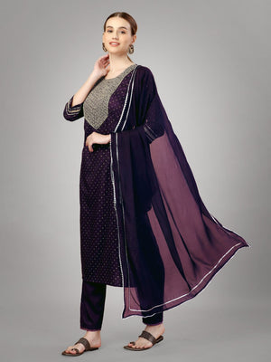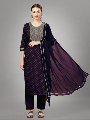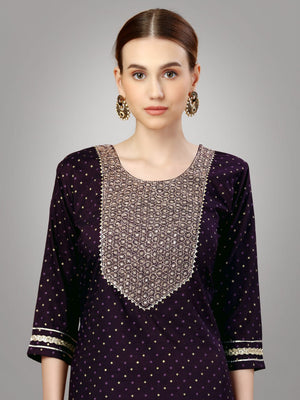Purple Color Silk Blend with Embroidery and Sequence Work Pant - Kurti Pant Dupatta