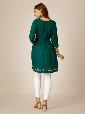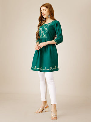 Rama Color Rayon with Embroidery and Sequence Work Kurti