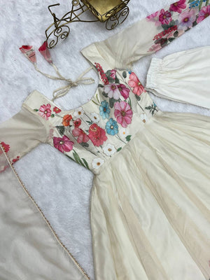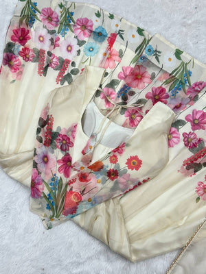 Cream Pure Soft Organja Silk Flower Position Outing Work Salwar Suit