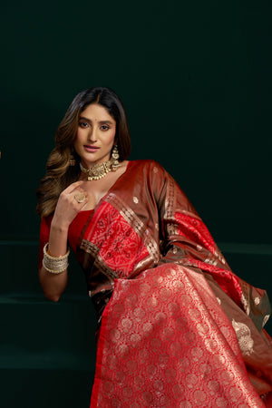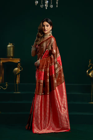 Indulge in timeless elegance with our exquisite Saree, accompanied by a matching blouse piece. Crafted with meticulous attention to detail, this ensemble is designed to exude sophistication and grace on any occasion. Whether it's a wedding, festival, or special celebration, our Saree with Blouse Piece ensures you stand out with effortless elegance and charm. Embrace tradition and make a statement with our exquisite ensemble, curated for those who appreciate the finer nuances of ethnic couture.