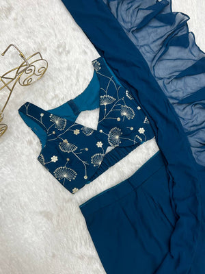 Ready To Wear Sharara Saree With Full Sttiched Blouse Premium Fox Georgette Fabric