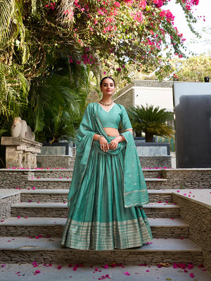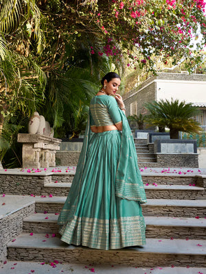 Sea Green Chanderi Lehenga Choli with Zari Weaving Border – Designer Wedding & Festive Wear Lehenga
