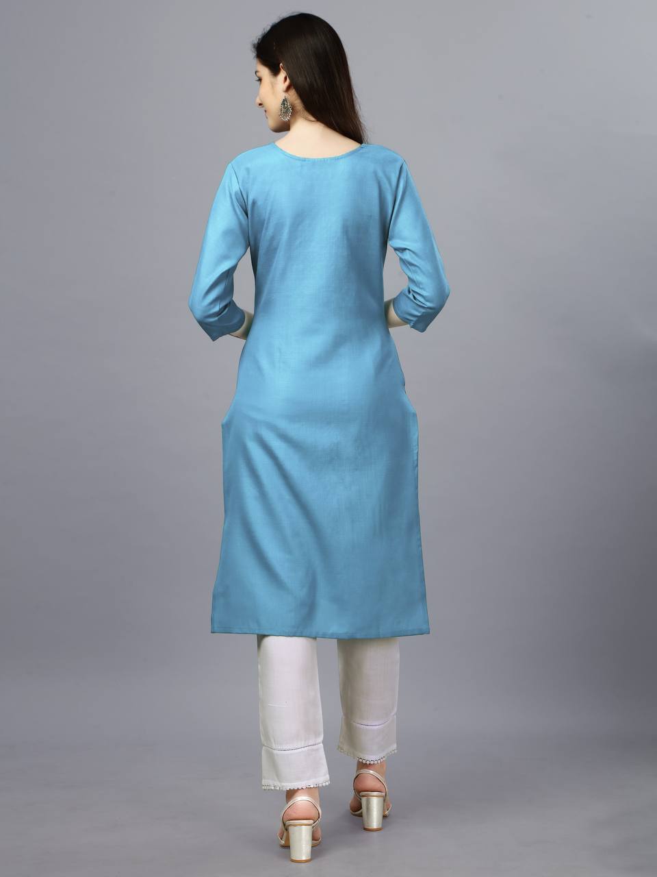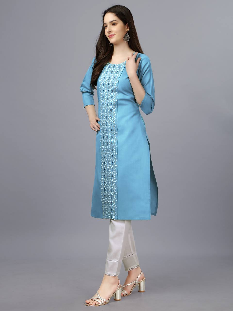 Sky Blue Color Fully Stiched Casual Embroidery Kurti