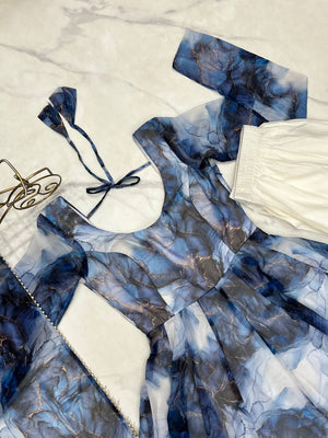 Navy Blue Heavy Pure Soft Organza Silk Marble Print Salwar Suit