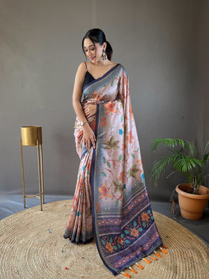 Voilet Printed Digital Kalamkari Saree