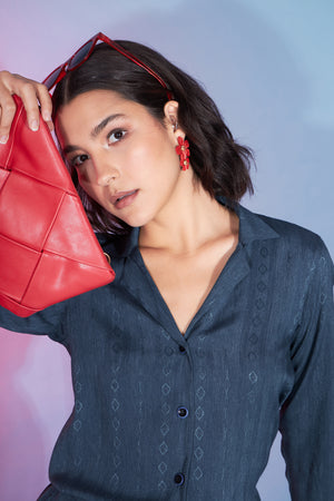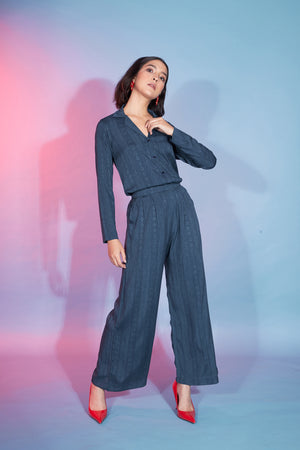 Teal Green Viscose Rayon Self Design Knot Pattern Co-Ord Set