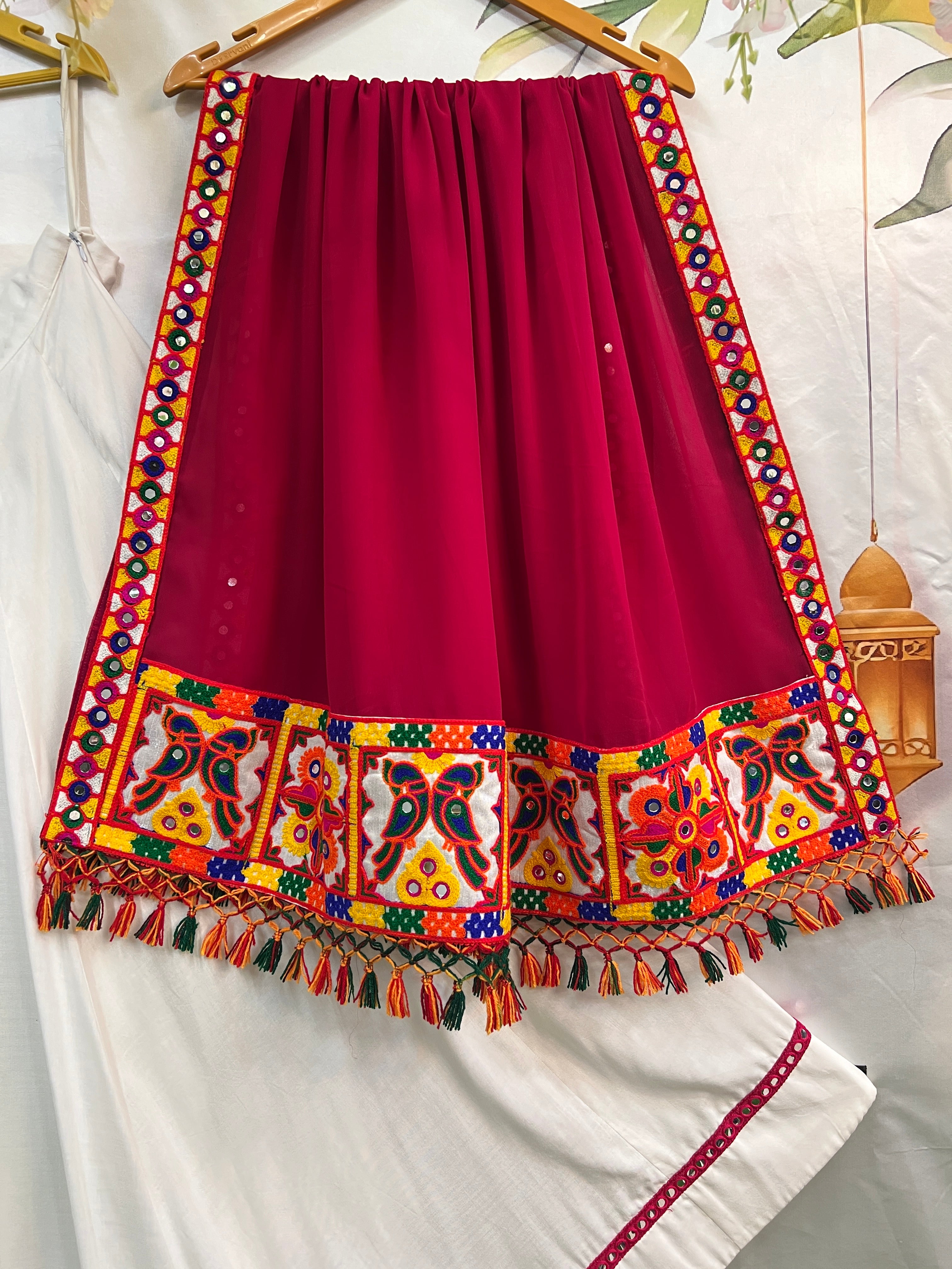 Work :- Real Mirror Gamthi Work Lace + Toran Lace