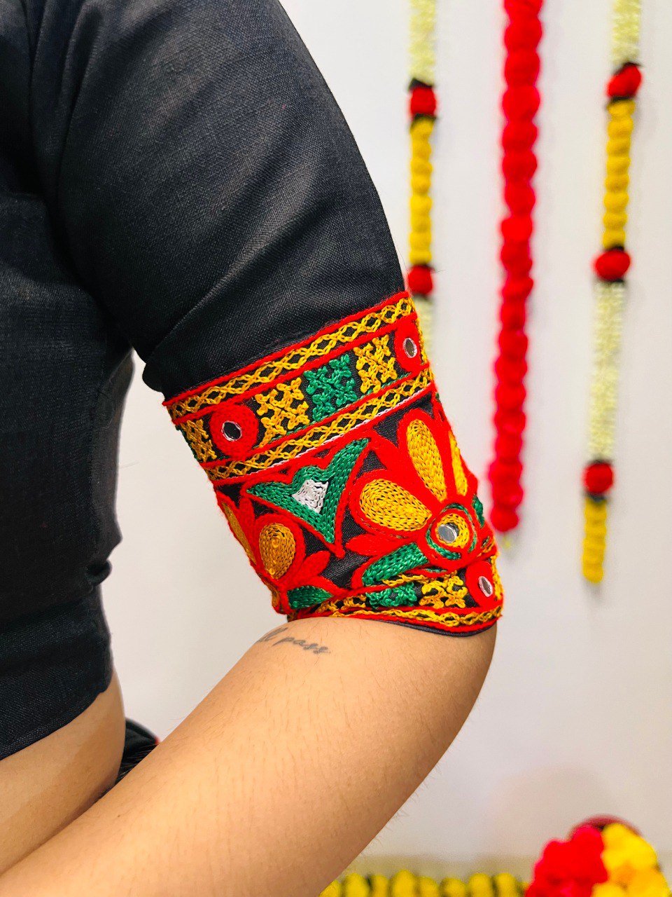 Blouse Work: Gamthi Work Lace With Mirror Work