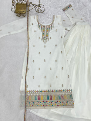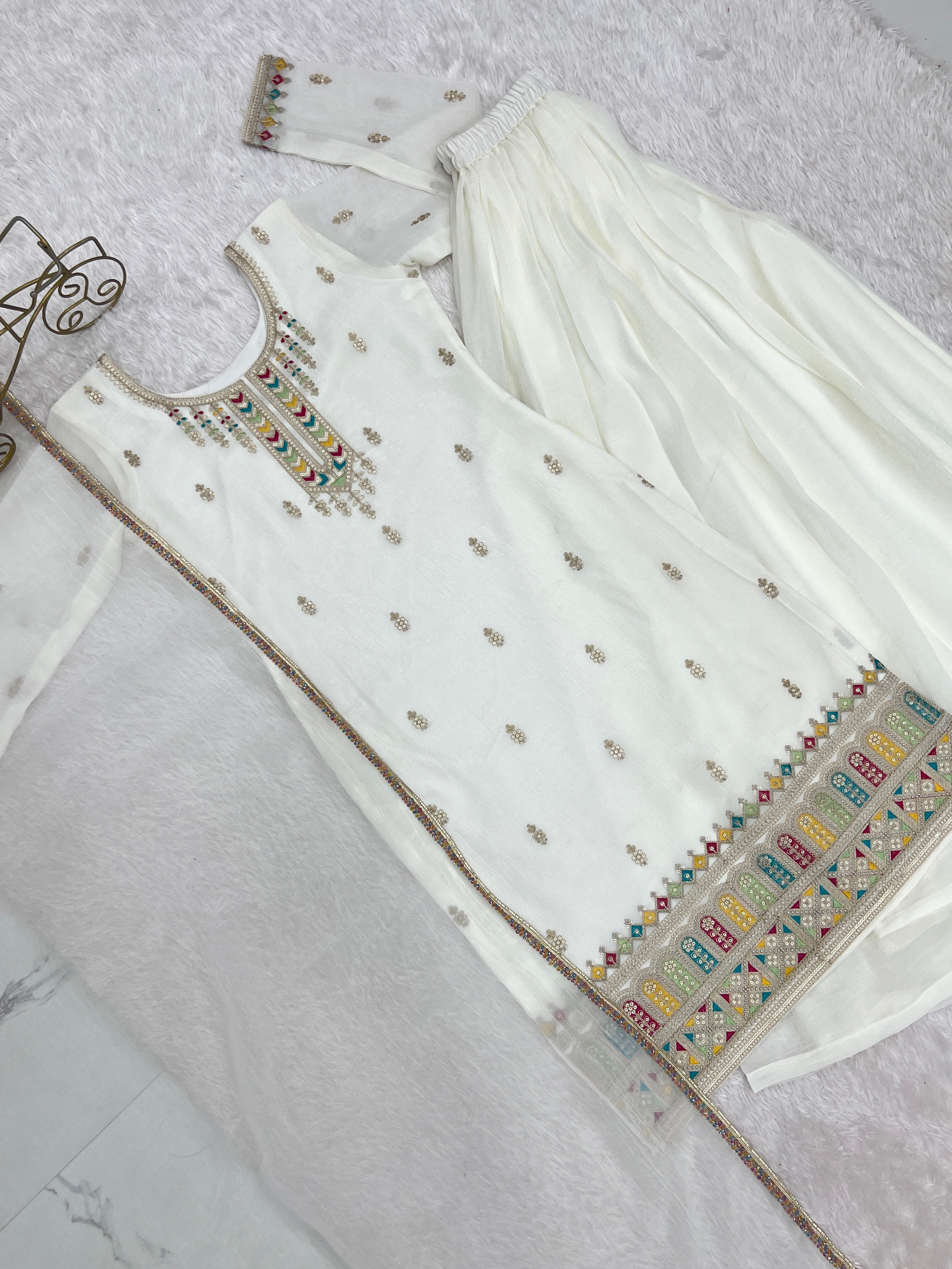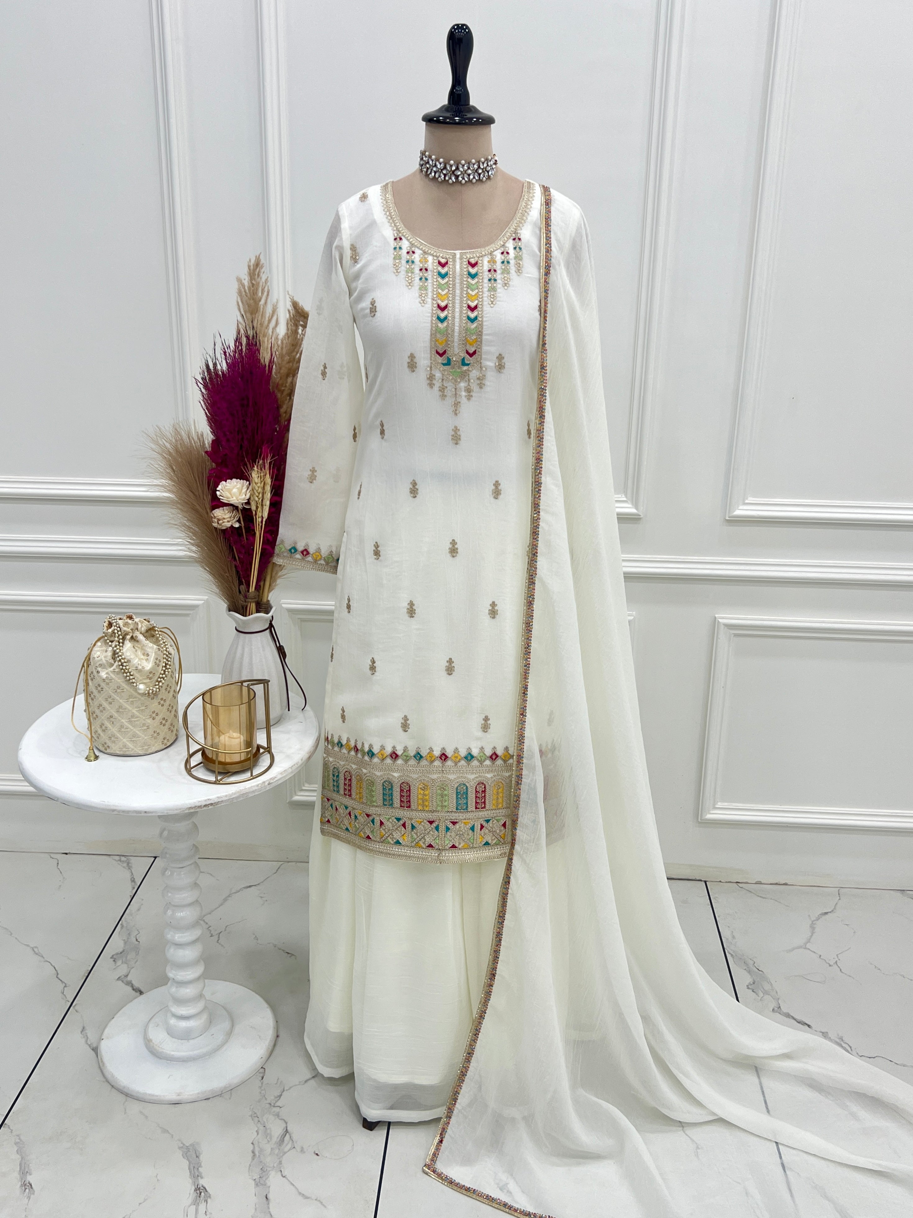 White Pure Soft Silk Fancy Embroidery Sequence & Jari Work Sharara – Designer Festive Sharara Suit